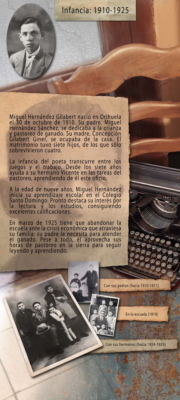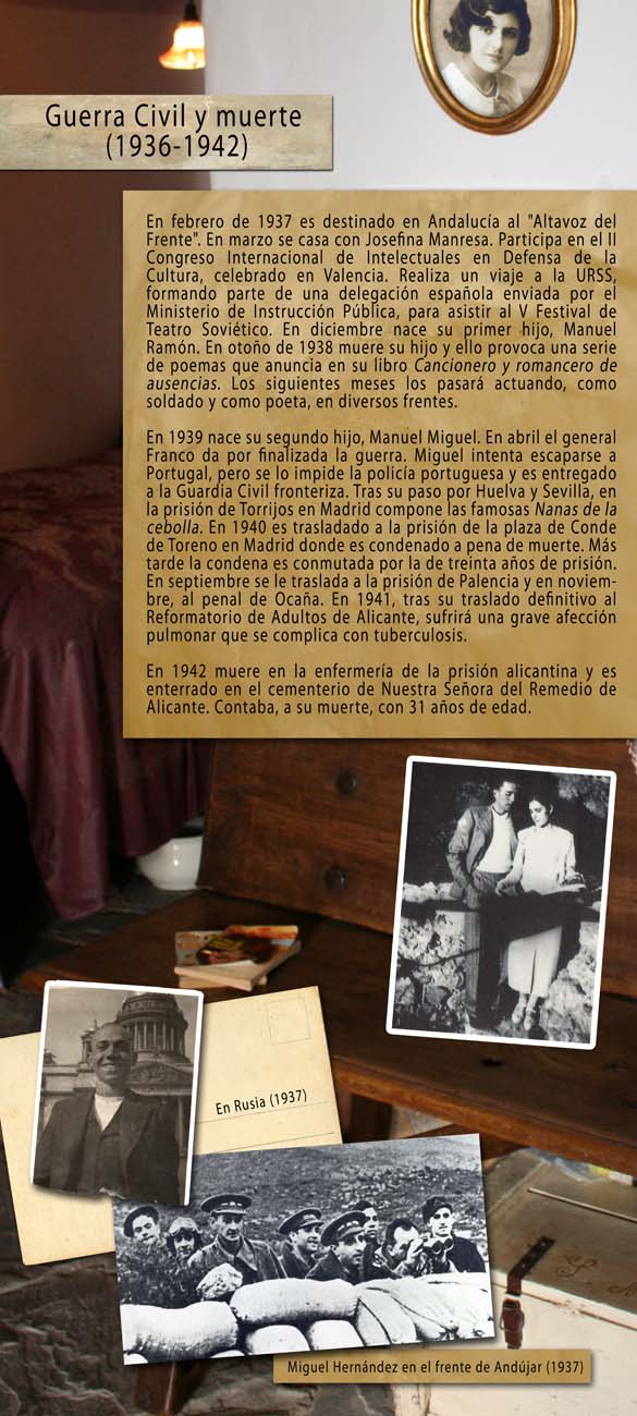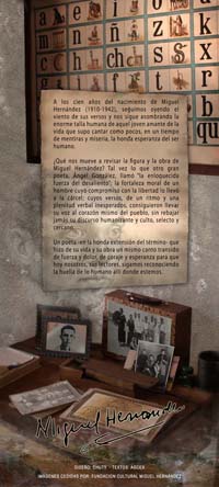 Diseño: AGCEX - Fotografías y maquetación: Chuty (www.chuty.net) Fotos de Miguel Hernández cedidas por la Fundación Cultural Miguel Hernández. Con la colaboración de AUPEX. |
